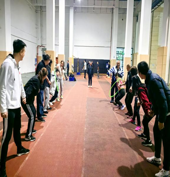 “圆圈速递”项目要求队员在限定条件下利用身体部位传递呼啦圈。团队成员默契配合:“这个项目让我们深刻理解到——工作中每个岗位都像传递环节,任何失误都会影响整体效率。”
